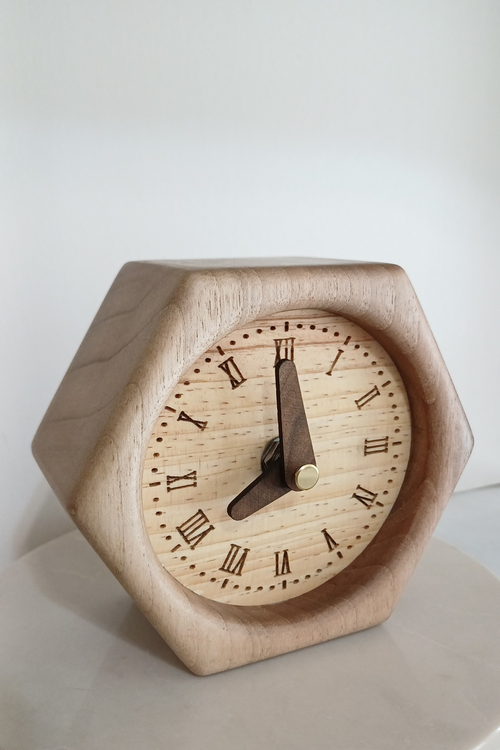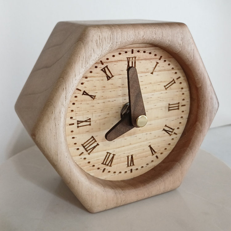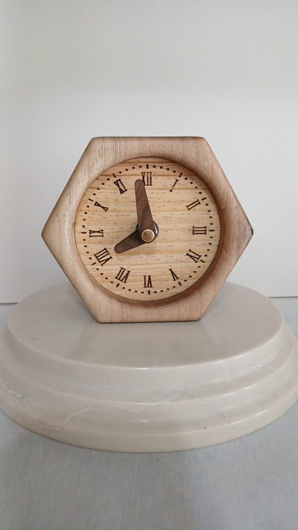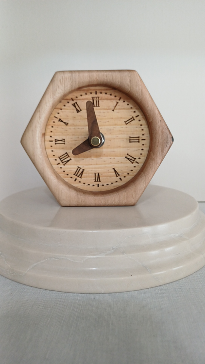 ساعت رومیزی دکوراتیو هگزا – ساخت چوب گردو – طراحی ششضلعی