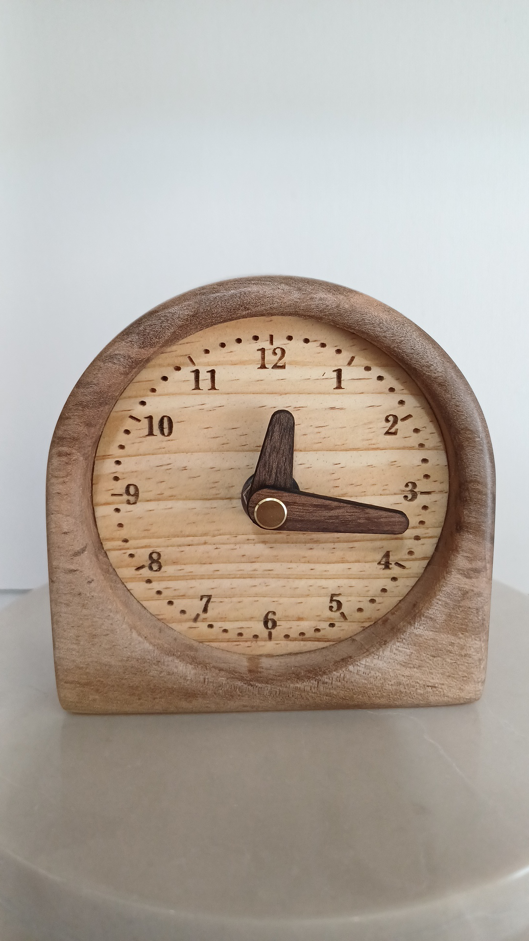 ساعت «ایوان»، نمونهای بینظیر از صنایع دستی چوبی و پاسخی به نیاز دکوراسیون طبیعتگرا است. ساختار چوب گردو یک پارچه، کیفیت، اصالت و دوام این محصول تزئینی را تضمین میکند. سبک طراحی کلاسیک مینیمال با انحنای نرم و گنبدی شکل، این ساعت را به یک اکسسوری رومیزی شیک تبدیل کرده است. این ساعت چوبی رومیزی با ابعاد مناسب خود، برای بهینهسازی دکوراسیون فضاهای داخلی، چه در خانه و چه در محیط کار، ایدهآل است. ظرافت در جزئیات، مانند عقربههای دو رنگ و حکاکی اعداد، بر ارزش هنری و قابل جستجوی بودن آن در دسته دکوری چوبی لوکس میافزاید.