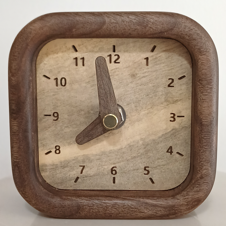 ساعت رومیزی چوبی مدرن «ریتم» (Ritm) - مکعب گوشهگرد از چوب گردو