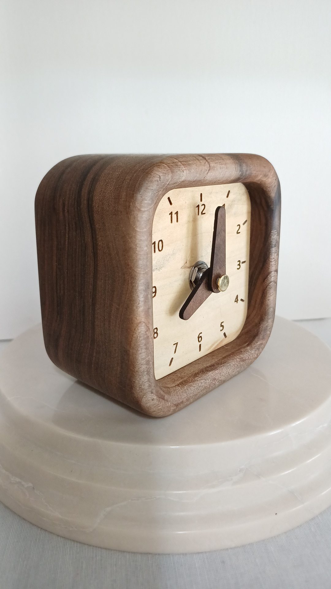 Ritm Modern Wooden Desk Clock - Rounded Cube Solid Walnut Wood