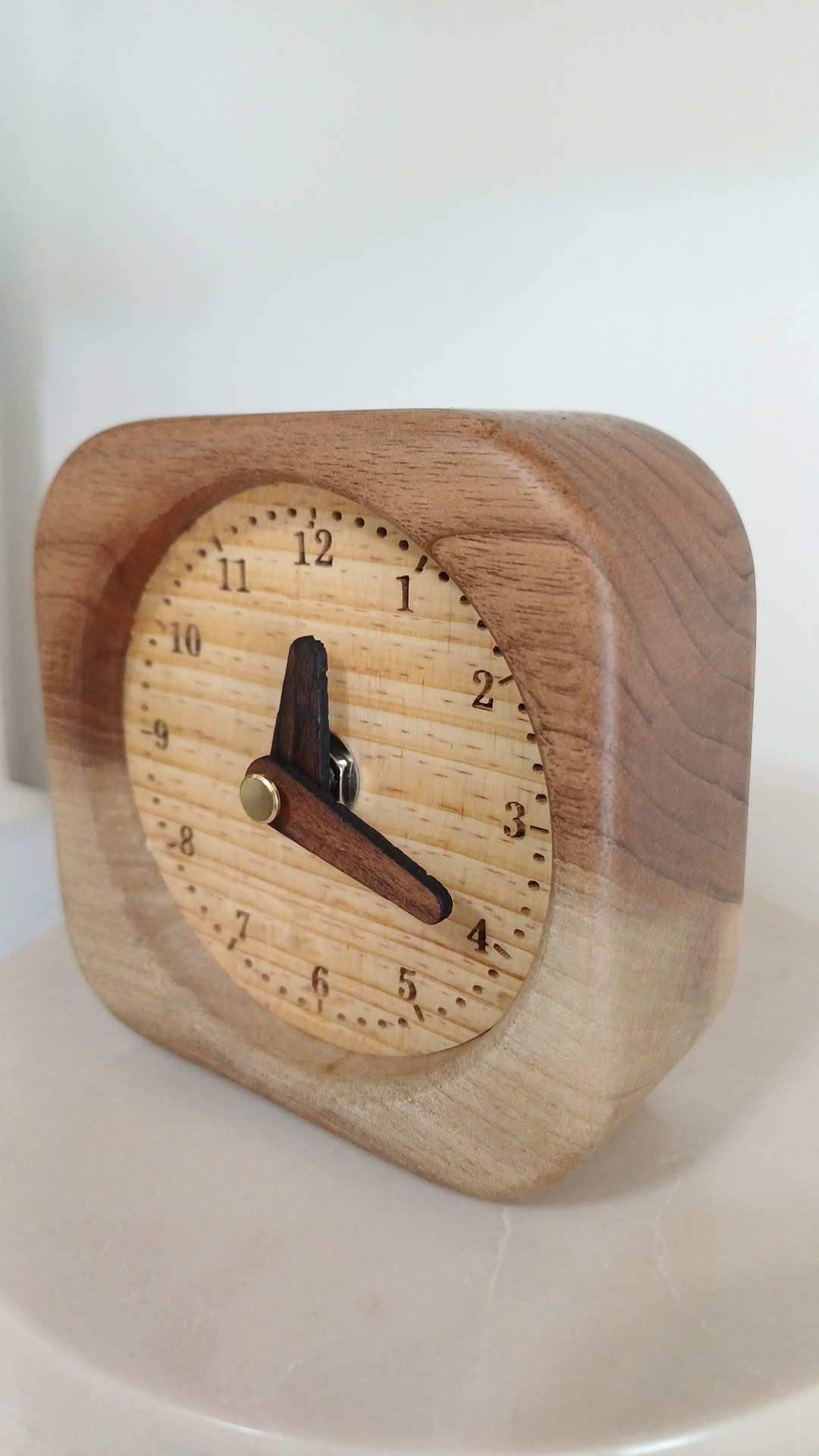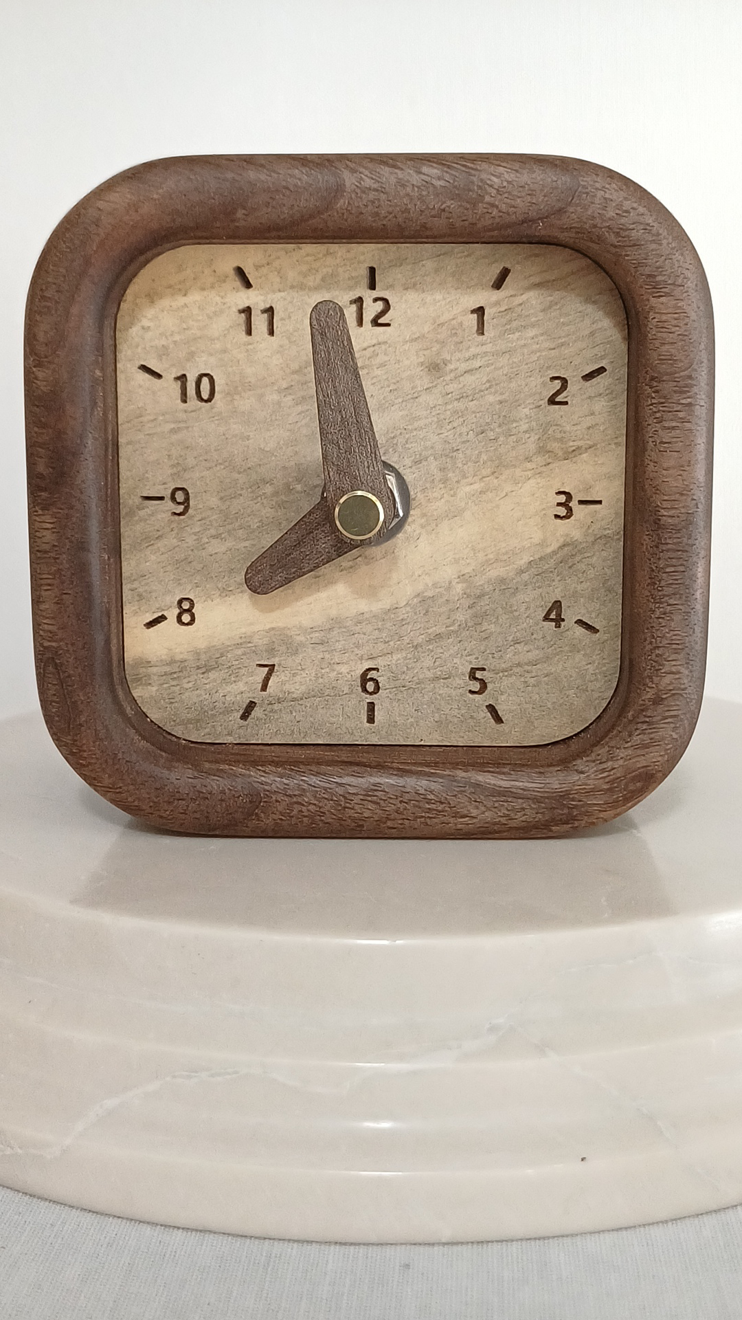 ساعت رومیزی چوبی مدرن «ریتم» (Ritm) - مکعب گوشهگرد از چوب گردو