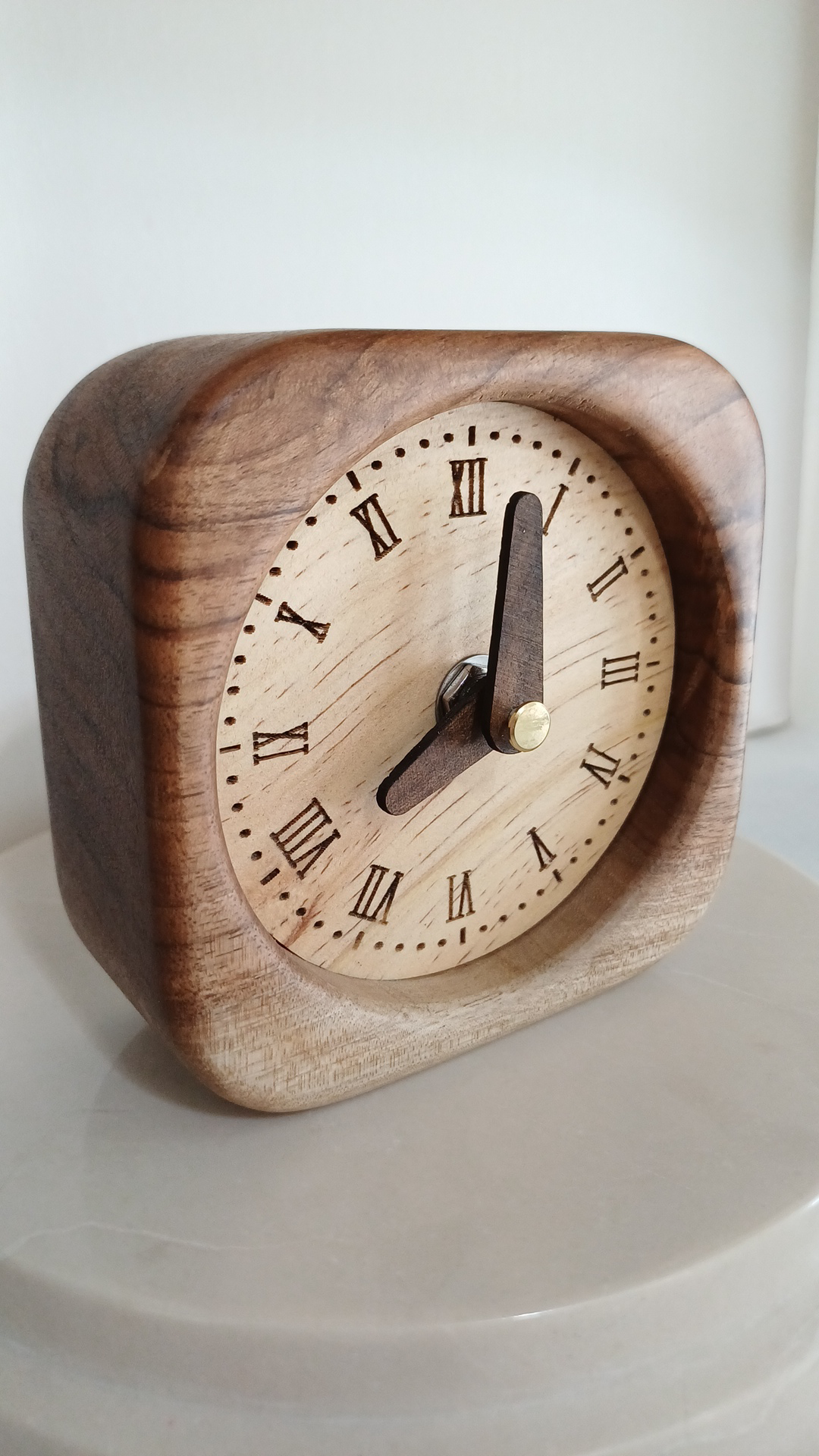 Mīrāth Roman Numerals Wooden Desk Clock - Crafted from Solid Walnut Wood