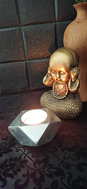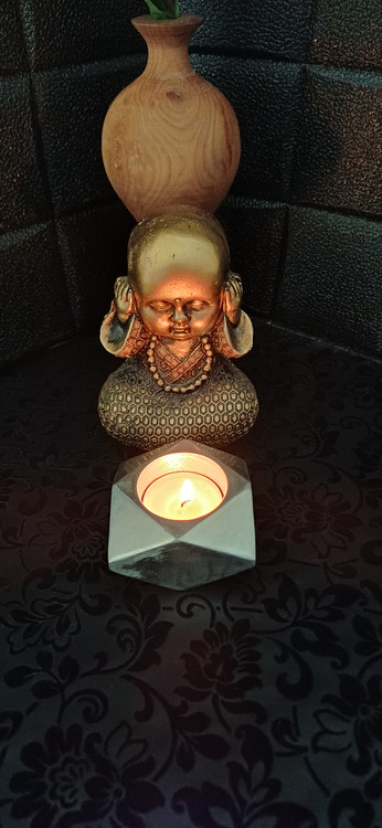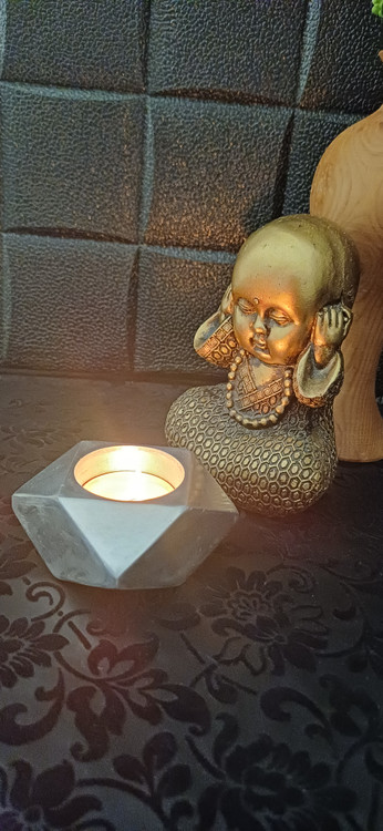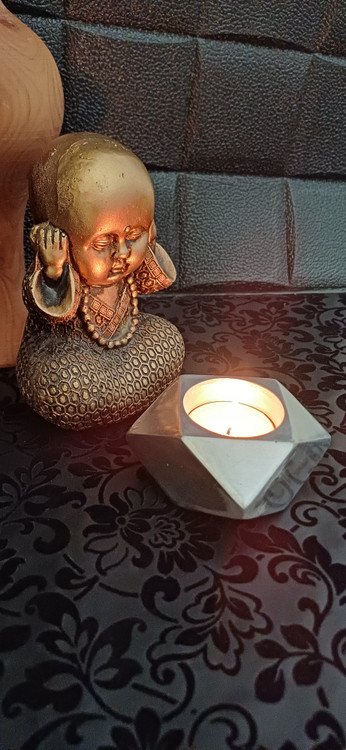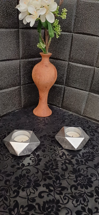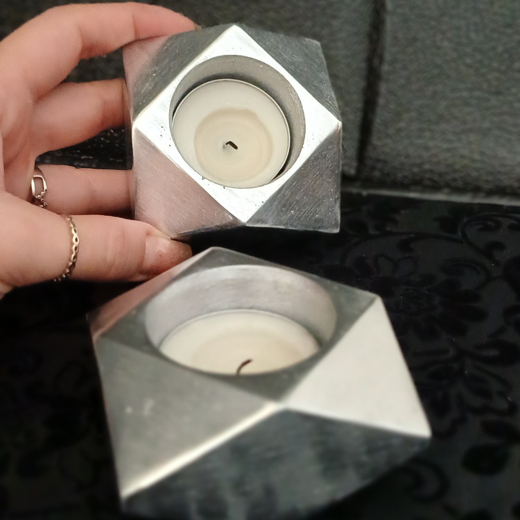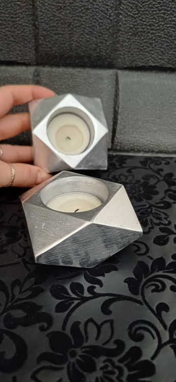 شمعدان دکوراتیو آلومینیومی تراشخورده «الماس» - جاشمعی هندسی