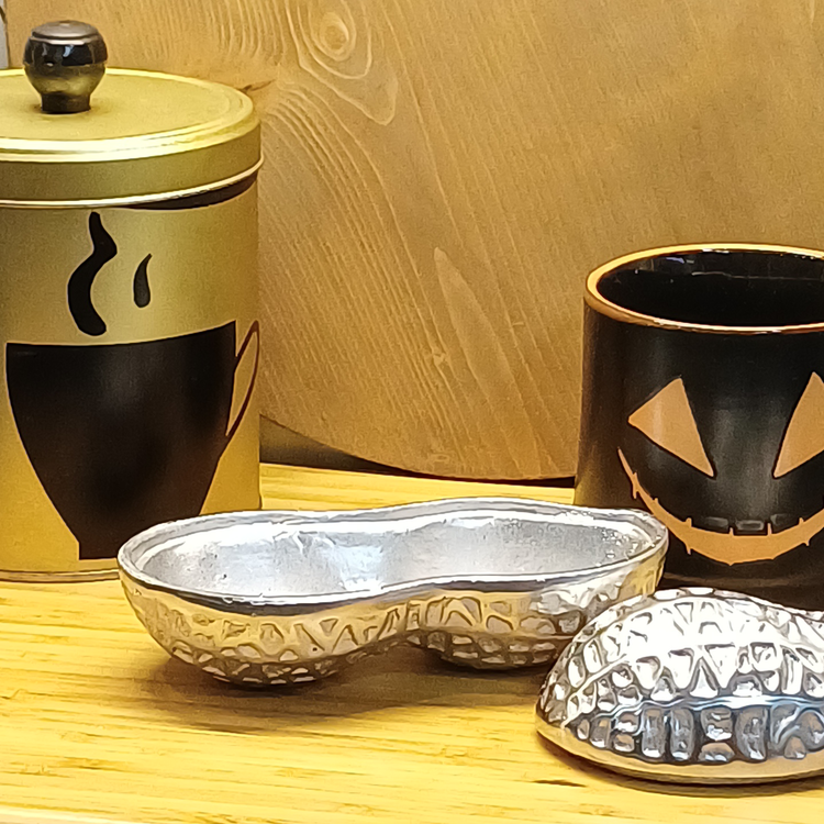 ظرف پذیرایی لاکچری آجیل و شکلات طرح بادام زمینی | آلومینیوم کار دست
