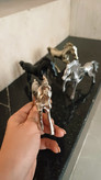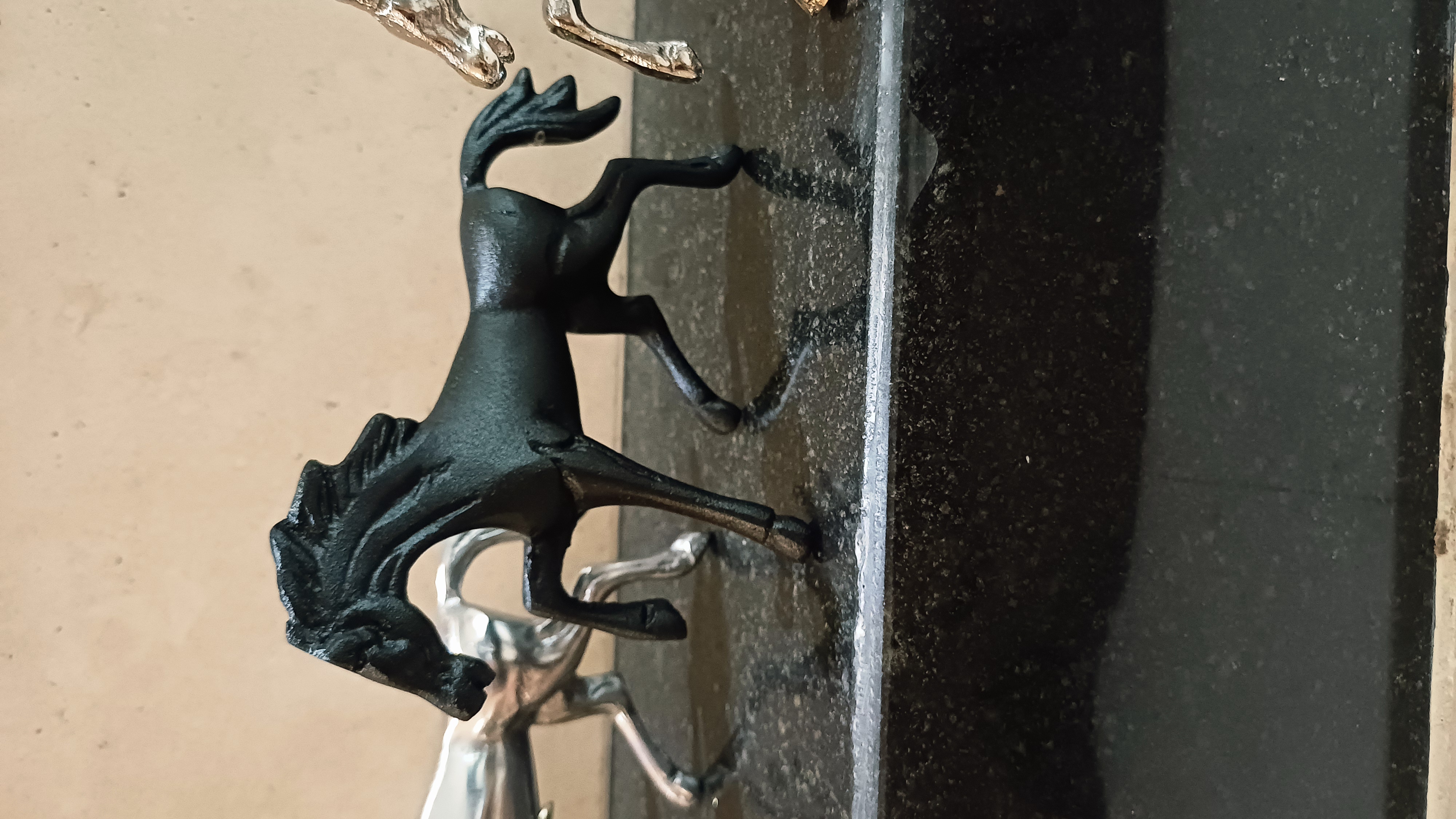 پایهی مشکی آن تضادی ظریف با درخشندگی فلز ایجاد کرده و حضورش را روی هر میز یا طاقچهای شاخص میسازد. برای کسانی که به دکورهای مدرن و مینیمال علاقه دارند، این مجسمه انتخابی بینقص است.
