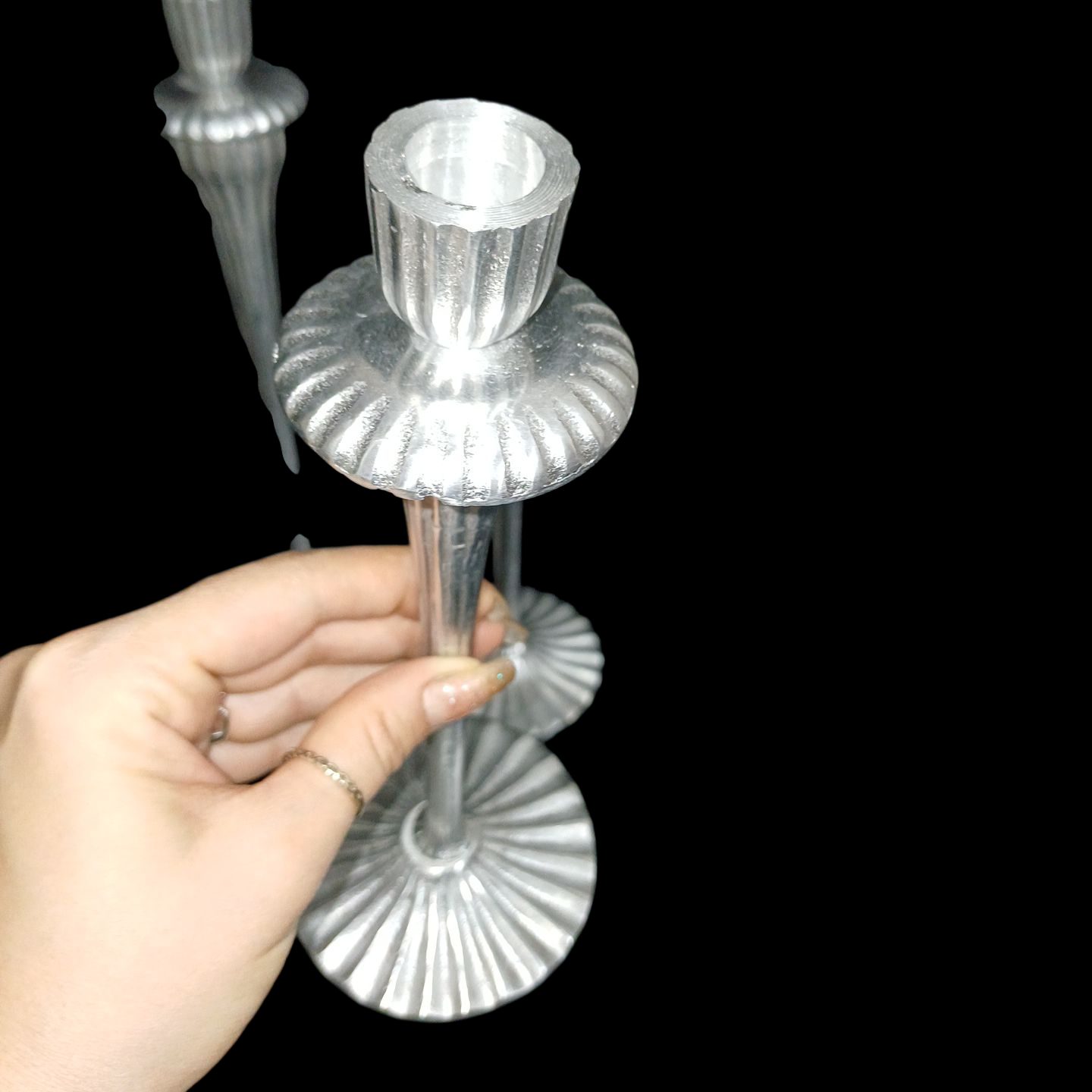 شمعدان سهتایی آرکانا به گونهای طراحی شده که سه ارتفاع متفاوت آن در کنار هم، ریتم و عمق بصری ایجاد میکنند. این ترکیب باعث میشود میز ناهارخوری، کنسول ورودی، میز جلو مبلی یا حتی فضای مراسم رسمی جلوهای طراحیشده و لوکس پیدا کند. استفاده از شمع مدادی بلند در این مدل، ارتفاع فضا را افزایش داده و نور گرم و متمرکزی ایجاد میکند که حس صمیمیت و وقار را همزمان منتقل میکند.