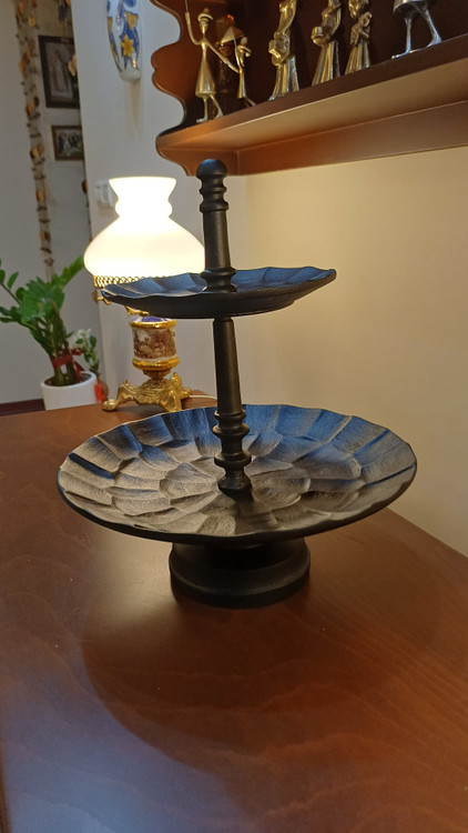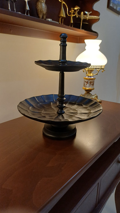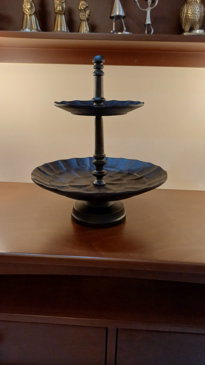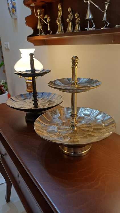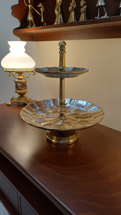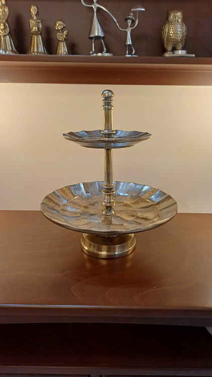 ظرف پذیرایی دوطبقه پایه دار طرح سنگی، ساخته شده از متریال بسیار با کیفیت از جنس آلومینیوم ،با طراحی چند منظوره وکاربردی .